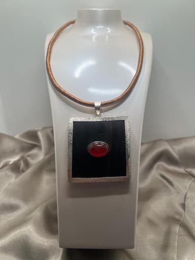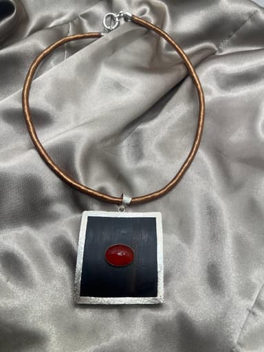 Colar c/ Fio de Sirgaria c/ Centro em Ébano Beirado a Prata c/ Ágata