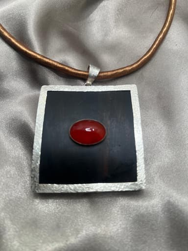 Colar c/ Fio de Sirgaria c/ Centro em Ébano Beirado a Prata c/ Ágata em Cx Prata ao Centro