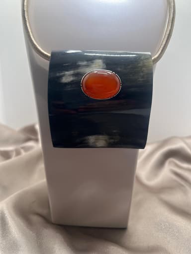 Colar c/ Centro em Chifre e Pedra Corvalina Oval em Cabochão