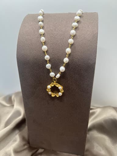 Colar c/ Pérolas Enfiado a Terço c/ Centro de Grinalda c/ Elementos Prata Convecços e Pérolas