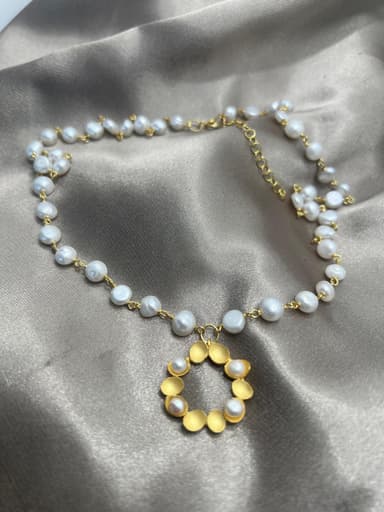 Colar c/ Pérolas c/ Centro de Grinalda c/ Elementos Prata Convecços e Pérolas
