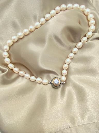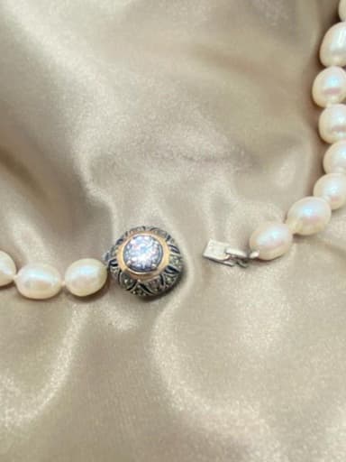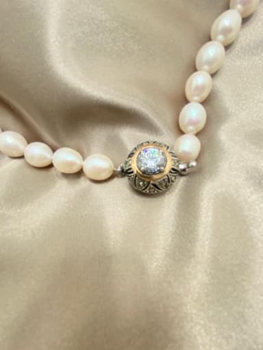 Colar em pérolas barrocas com centro redondo em prata e ouro e marrcacites e zirconia centro, ouro 0,5grs e prata 6 grs