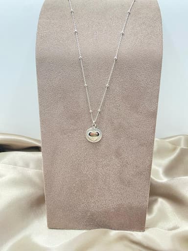 Colar Malha Cadeado Fino c/ Esferas e Centro Encanastrado c/ Coração